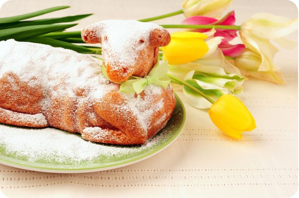Na stole pak najdete sladké pečivo podobné mazanci a tradičního beránka.